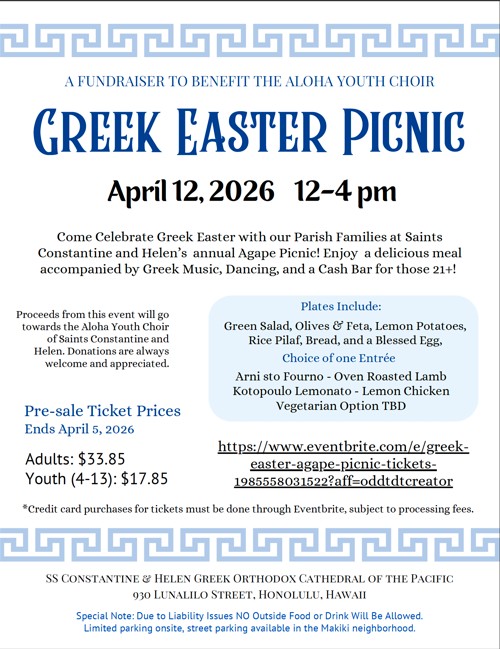 Ss. Constantine & Helen Greek Orthodox Cathedral of the Pacific, Attn: Philoptochos, 930 Lunalilo St, Honolulu, HI 96822