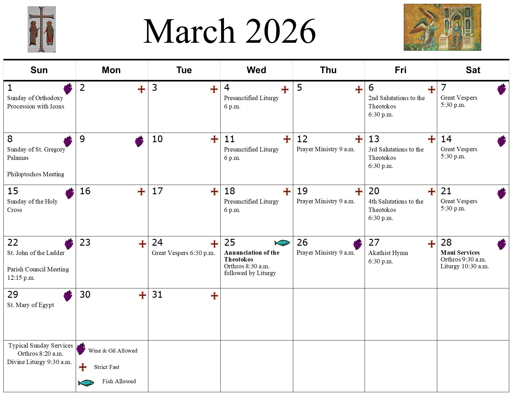 - Pre-Sanctified Liturgy 6 p.m.